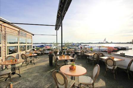 Sfeervol. Slechts koffie met appeltaart genomen. Prima. Vriendelijk personeel. Mooi uitzicht over water. Levendig. Sfeervolle achtergrond muziek. Volgens mij een aanrader om te eten.